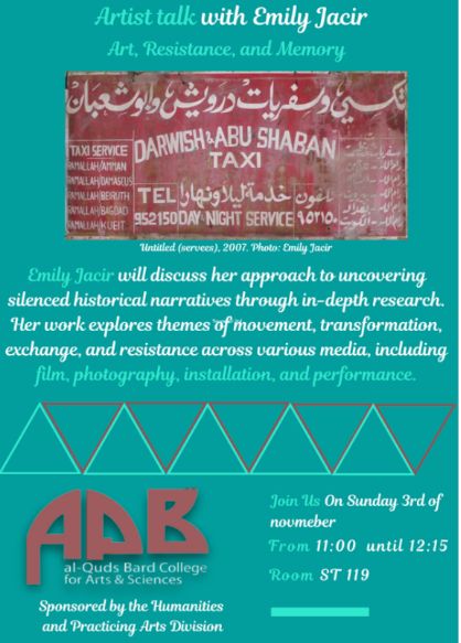 Art, Resistance, and Memory: Hosted by the Division of Humanities and Practicing Arts with Emily Jacir