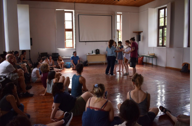 Inspired by improv theater, this workshop invited participants to co-produce and perform stories related to critical political and environmental issues. One of the workshop’s aims was to create the conditions for participants to get to know each other, namely by providing a safe space for them to playfully share and exchange knowledge, experiences and worldviews, and familiarize themselves with a collaborative storytelling process. Through 3 different performative exercises, the workshop aimed at triggering participants’ imagination and senses, encouraging them to observe their relation to the physical location and with each other. Another goal of the workshop was to bring to the forefront our different positionalities, our preconceptions and existing hierarchies that are at play when we collaborate and interact, but which usually remain implicit. Always in collaboration and at the same time spontaneously, with no time to prepare, therefore building on embodied and affective knowledge, participants were incited to reflect on politics of knowledge production, especially the entanglement of normative discourses and ideas with their own situated knowledge.
